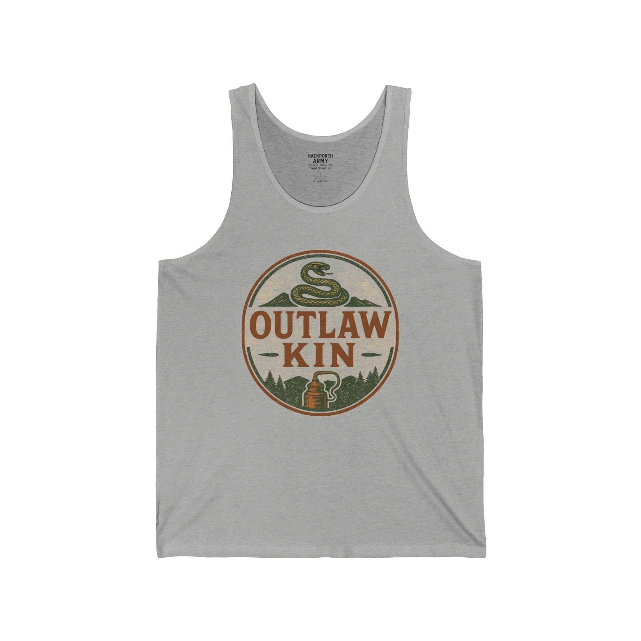 Outlaw Kin – Legacy Edition $30.00 Backporch Army – Storyteller’s Standard $30.00 Too Fast to Catch – Runner’s Code $30.00 Backporch Army Sticker – An Appalachian Tale $5.00 Backporch Army Iron-On Patch – Appalachian Embroidered Badge for Jacket, Vest, Backpack, or Hat $22.00 Backporch Army Hat – Khaki Low Profile Cap with Appalachian Logo $32.00 Outlaw Kin Hat – Khaki Dad Cap for Southern Heritage and Family Legacy $32.00 Too Fast to Catch Hat – Khaki Rebel Cap for Runners, Riders & Moonshine Ghosts $32.00 Kiss-Cut Vinyl Decals $1.95 🩱 RACERBACK (Women’s cut – Front print only)🪵 Backporch Army Backporch Army – Women’s Racerback Tank Backporch Army Tank – Mountain Made $30.00 👕 JERSEY TANK (Unisex – Front + Back + Neck Label) 🔥 Outlaw Kin Outlaw Kin – Unisex Jersey Tank (Front + Back Print) Outlaw Kin Tank – Kin by Choice, Outlaw by Blood $30.00 🩱 RACERBACK (Women’s cut – Front print only) 🔥 Outlaw Kin Outlaw Kin – Women’s Racerback Tank Outlaw Kin Tank – Raised Rough, Running Free $30.00 👕 JERSEY TANK (Unisex – Front + Back + Neck Label) 🔥 Outlaw Kin Outlaw Kin – Unisex Jersey Tank (Front + Back Print) Outlaw Kin Tank – Kin by Choice, Outlaw by Blood $30.00 👕 JERSEY TANK (Unisex – Front + Back + Neck Label) 🏁 Too Fast to Catch Too Fast to Catch – Unisex Jersey Tank (Double Print) Too Fast to Catch Tank – Ridge Runner Legacy $30.00